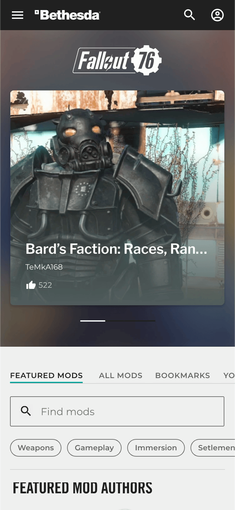 Designed a hub for creators to show off their game mods and creations, including new UI for featured creations and verified creators.